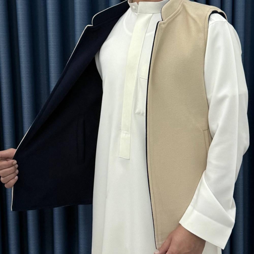 سديري شتوي رجالي أنيق مصنوع من قماش الجوخ الكشميري دبل فيس (وجهين) بجودة عالية وتصميم فاخر يمنحك الدفء والمظهر الكلاسيكي الراقي في آنٍ واحد.